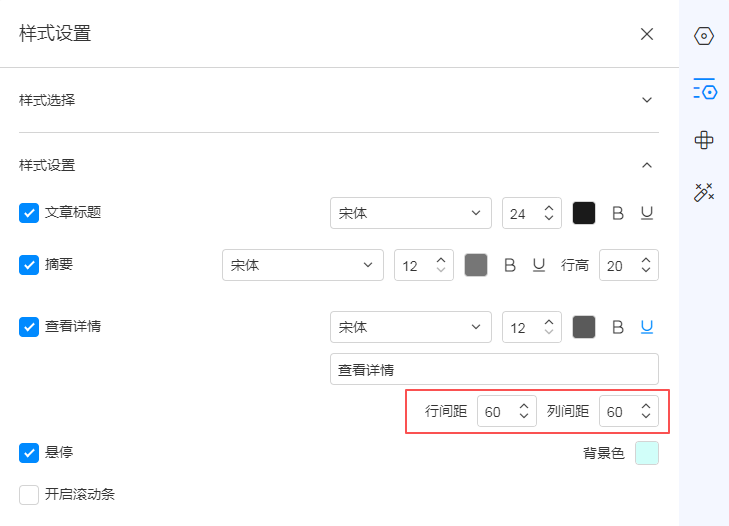 以下文章列表样式增加行间距、列间距设置项