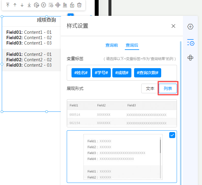 查询后展现形式提供列表选项