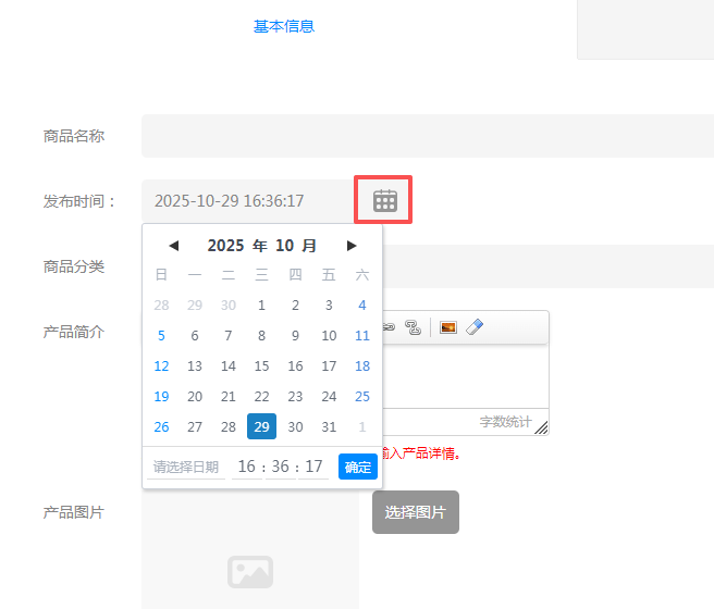 四、基础版、标准版添加产品增加日期选择器